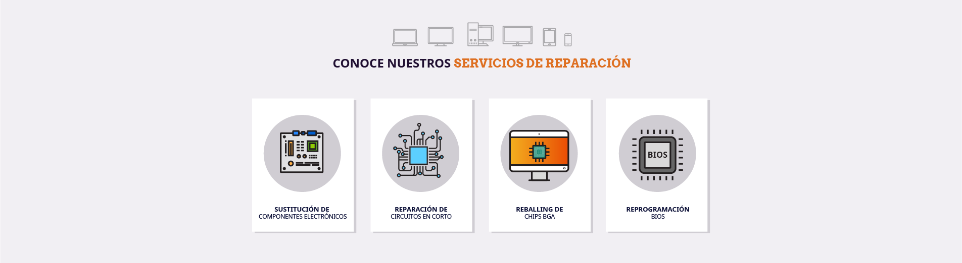 Cuente con un servicio técnico de experiencia y calidad. Atendemos sus averías con soporte presencial y remoto. Recuperamos datos, realizamos procesos de desinfección de virus, aplicamos recambios o sustitución de servidores, workstations, portátiles, etc.